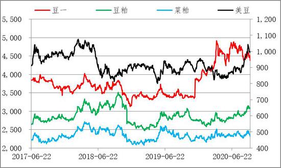 综上,豆粕价格受进口大豆价格抬升影响托底,需求稳中趋升,压榨量较大,豆粕库存缓慢下降,豆粕价格易涨难跌,呈现底部抬高走势。