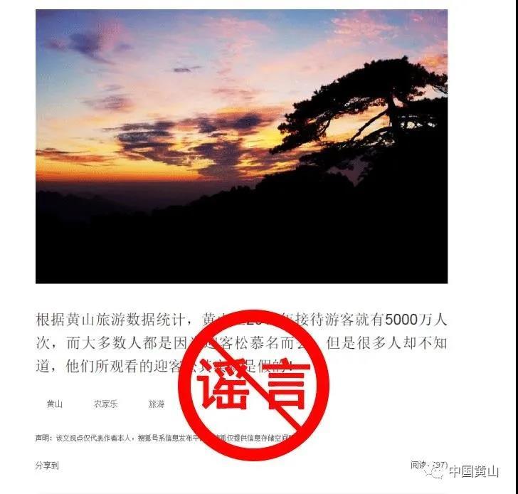 中国黄山微信公众号10月22日消息,近日,网络上个别自媒体发布不实信息,称“迎客松是塑料树”“迎客松是假树”,少数不明真相网友进行了转发转载。为澄清事实,黄山风景区管理委员会郑重声明: