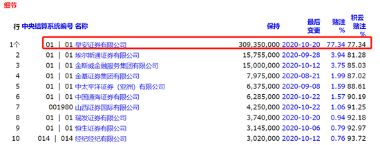 公司董事局主席袁士强夫妇控制75%的公司权益,公司第一大经纪商皇安证券持仓77.34%,因此,公司实控人持仓大概率被质押于皇安证券。