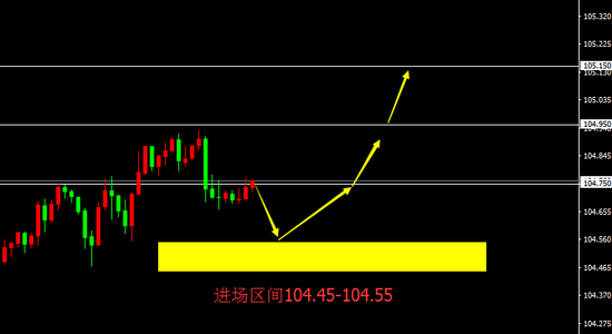 104.45-104.55区间买入,止损20点,目标104.75、104.95、105.15。