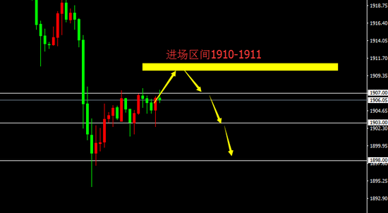 1910-1911区间沽空,止损3美元,目标1907、1903、1898。
