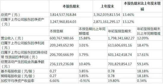 22日晚间,涪陵榨菜发布了三季报业绩,公司1月-9月实现营业收入17.98亿元,同比增长12.09%;实现归属于上市公司股东的净利润6.14亿元,同比增长18.47%。