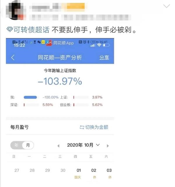 “从+25%到-26%,转债一天,股市一年,真是刺激。”