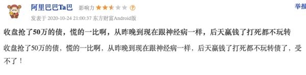 也有债民展示自己的“血泪史”,10月份的证券投资收益率-99.99%,证券投资账户里的资金已经几乎全部亏光。