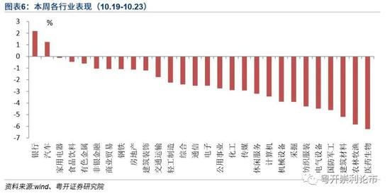 分板块看,仅有银行和汽车实现上涨,家用电器、食品饮料跌幅较小,医药生物、农林牧渔、建筑材料板块领跌。