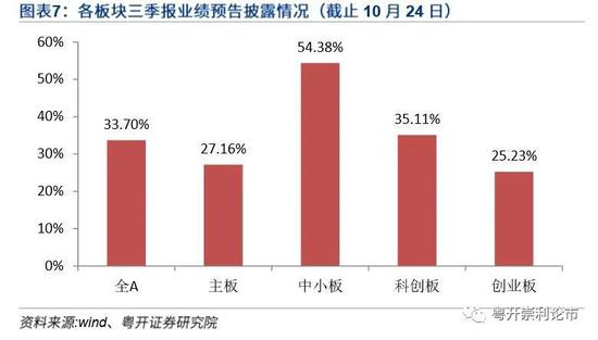 三季度业绩预喜率较二季度全面提升,盈利复苏态势延续。全部A股的预喜率为47.15%,高于二季度的45.08%。分板块看,创业板的预喜率最高,为77.63%;主板预喜率在各板块中最低,为33.33%。与二季度相比,各板块的预喜率均有所提升,盈利持续回暖。