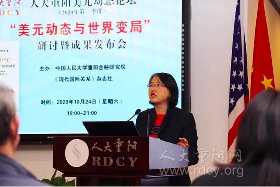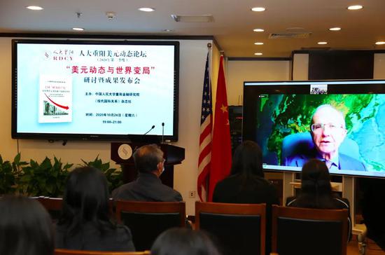 人大重阳网讯:自疫情爆发以来,美国货币政策与财政政策正表现出极端化倾向,并导致美元的国际地位受到不小的冲击。2020年10月24日,由中国人民大学重阳金融研究院与《现代国际关系》杂志社主办,中国人民大学中美人文交流研究中心(由人大重阳运营)承办的“美元动态与世界变局”研讨暨成果发布会顺利举办,十余位相关专家学者出席,并在线上线下展开了热烈讨论。