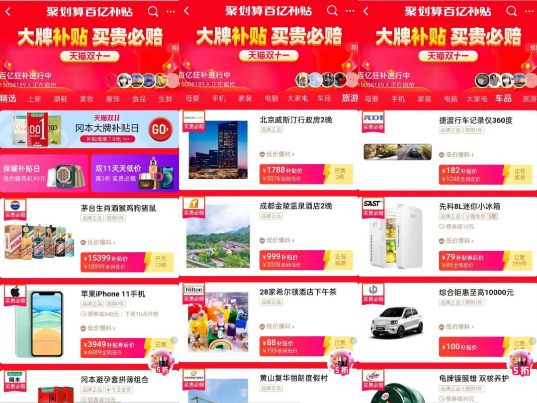 而今年,“双11”变得“本质”起来,降价就是降价、促销就是促销。其中,聚划算的大杀器就是已经“一年香”的百亿补贴,并喊出“全面升级大牌补贴,补上追补,全网低价”的口号。