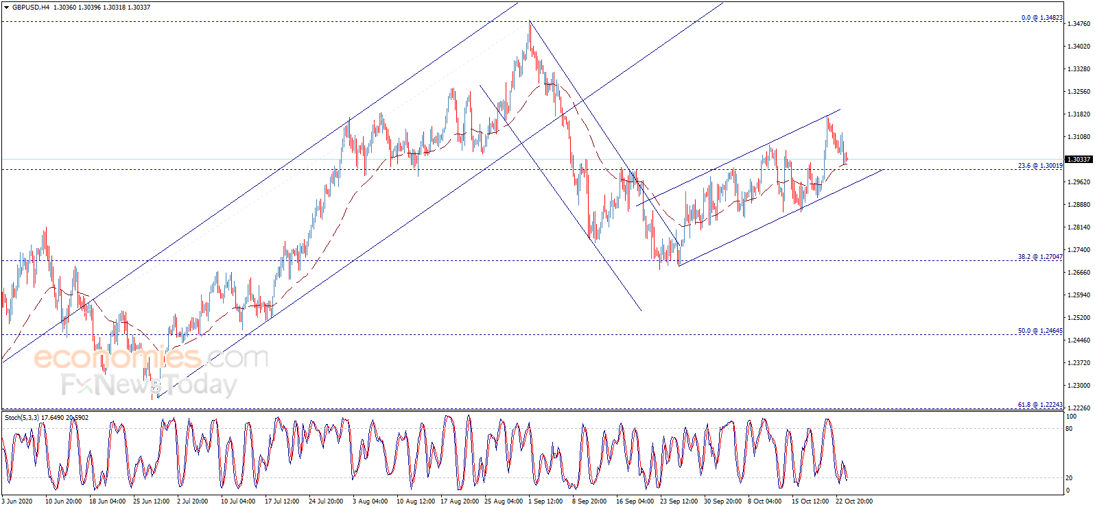 英镑/美元明显继续看空走势,并逼近主要等待的目标1.3000。从4小时图来看,EMA 50指标形成良好支撑。我们预计英镑/美元将继续跌势,直到触及看涨通道支撑线1.2945,这也是下一看空目标。