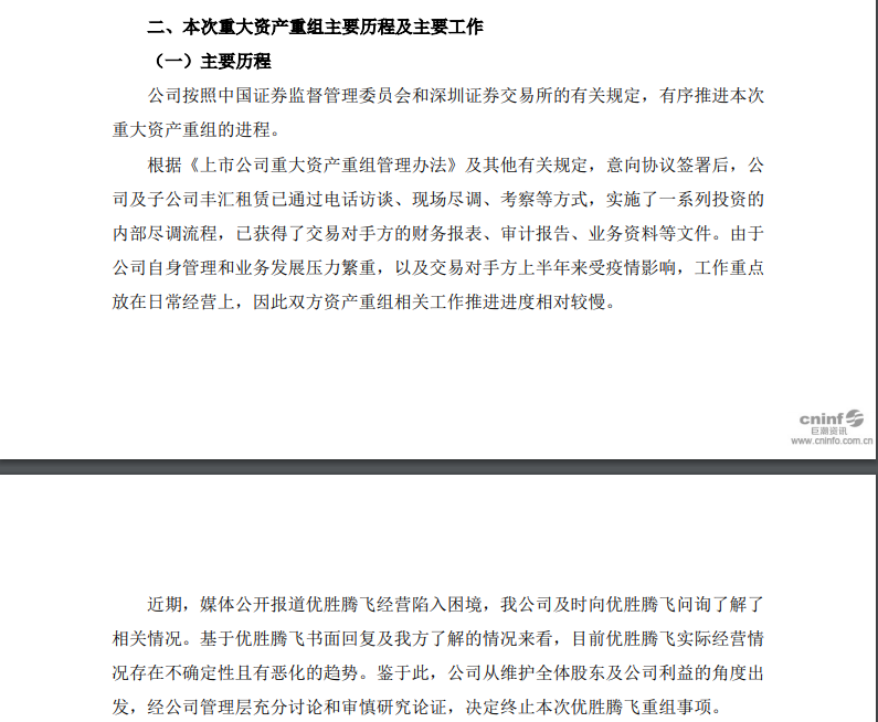最终,鉴于目前优胜腾飞实际经营情况存在不确定性且有恶化的趋势,金洲慈航了解情况后,决定终止这场收购优胜腾飞100%股权的交易。
