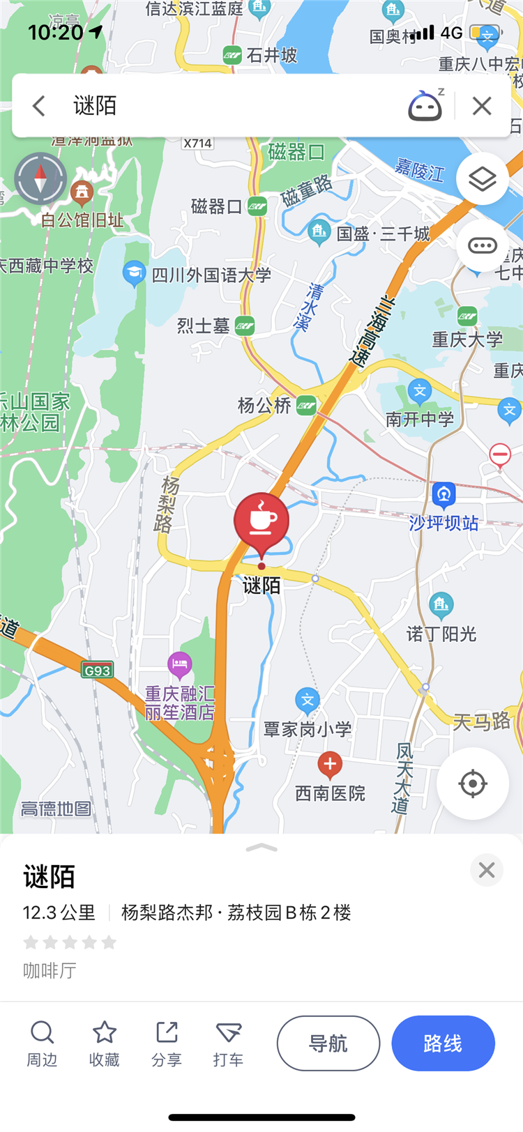 记者根据该视频中多次出现的“谜陌”,查询到该店应为沙坪坝区杨梨路附近一家咖啡厅,而非视频中显示的南纪门转盘。