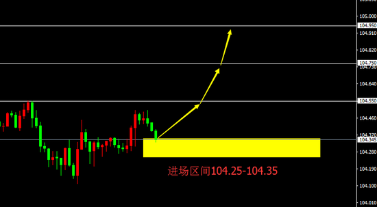 104.25-104.35区间买入,止损20点,目标104.55、104.75、104.95。