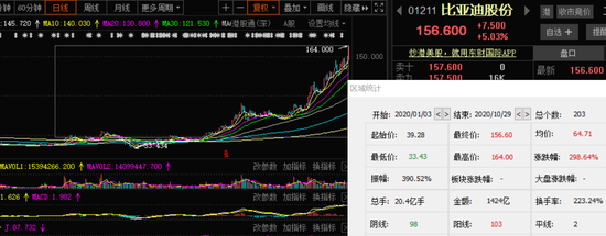 年内以来,比亚迪累计涨幅已达232.66%,最新市值4321亿元。