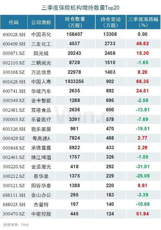 三季报显示,截至目前,已公布三季报的个股中,有197只个股前十大股东榜出现保险机构身影,三季度期间,保险机构新进持仓73只,另有39只个股获得增持,其中中国石化、三友化工、阳光城、三钢闽光、万达信息(维权)增持数量均在千万股以上,增持数量前两位均为化工板块个股。