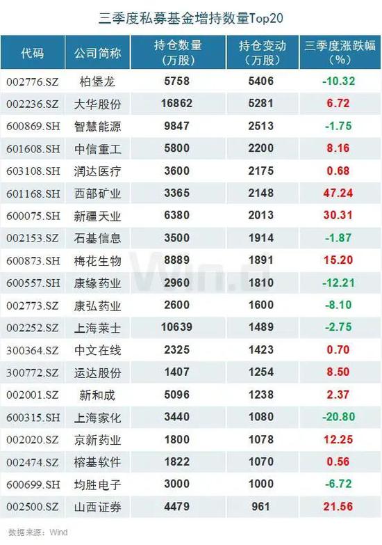三季报显示,目前已公布三季报的个股中,有653只个股获私募基金持仓,三季度期间,私募基金新进324只个股,增持124只个股,其中柏堡龙、大华股份、智慧能源、中信重工、润达医疗等19股增持数量均在千万以上。