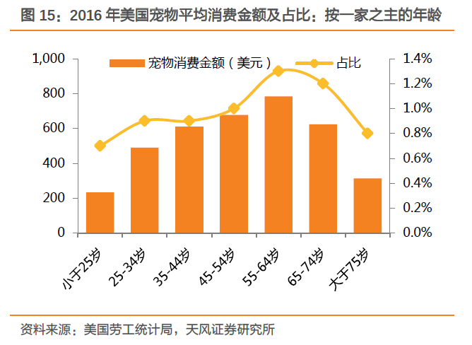55-64岁的老年人为宠物付出的最多,65岁之后已经有心无力,75岁之后的老人,已经老得养不动宠物了。宠物与老龄化,相依相伴,相依为命。