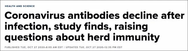 研究发现新冠病毒抗体在(患者)感染后下降,引发对“群体免疫”论的质疑 截图:CNBC