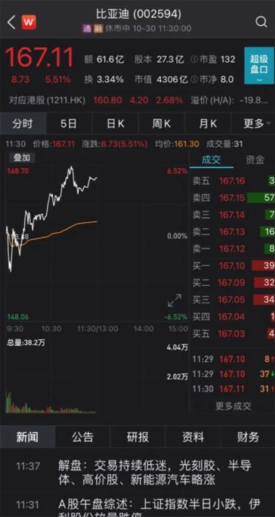 其中,比亚迪股价近日连创新高。截至30日午市收盘,比亚迪市值超过4300亿元,坐稳国内车企市值头把交椅。
