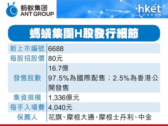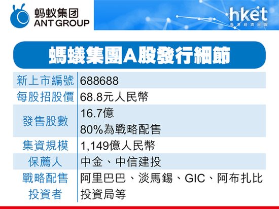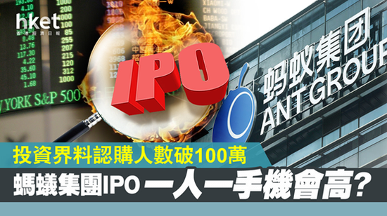 蚂蚁集团 (新上市编号:06688) IPO招股进入倒数阶段,蚂蚁掀抽新股热潮,至周四晚孖展认购已突破4700亿元。根据蚂蚁集团拨回机制,蚂蚁集团IPO公开发售占比最多可增至10%,由于蚂蚁集团每手仅50股,公开发售部分甲、乙组合计可分配344万手。投资界预期,由于蚂蚁集团认购门槛调低,蚂蚁IPO认购人数有机会超越100万人,蚂蚁IPO一人一手、人人有份的机会仍高。