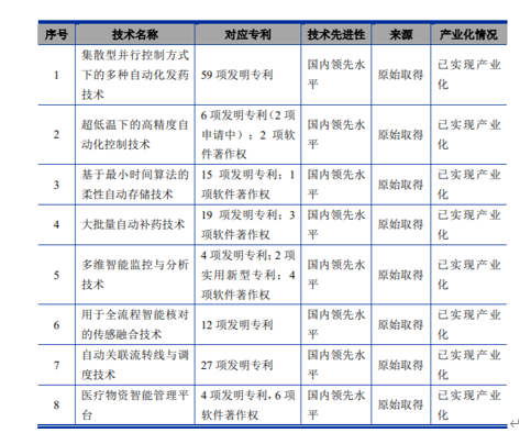 不仅在财务数据方面存在疑点,艾隆科技对于该公司的技术优势的信息披露同样备受拷问。根据艾隆科技最早一班招股书中披露到,“发行人拥有集散型并行控制方式下的多种自动化发药技术、超低温下的高精度自动化控制技术、基于最小时间算法的柔性自动存储技术、大批量自动补药技术等八项核心技术,且都达到国内领先水平”。但随后在《审核问询函的回复》中披露,为保证披露的严谨性和避免产生误导,发行人已在招股说明书中删除了“国内领先”相关描述。