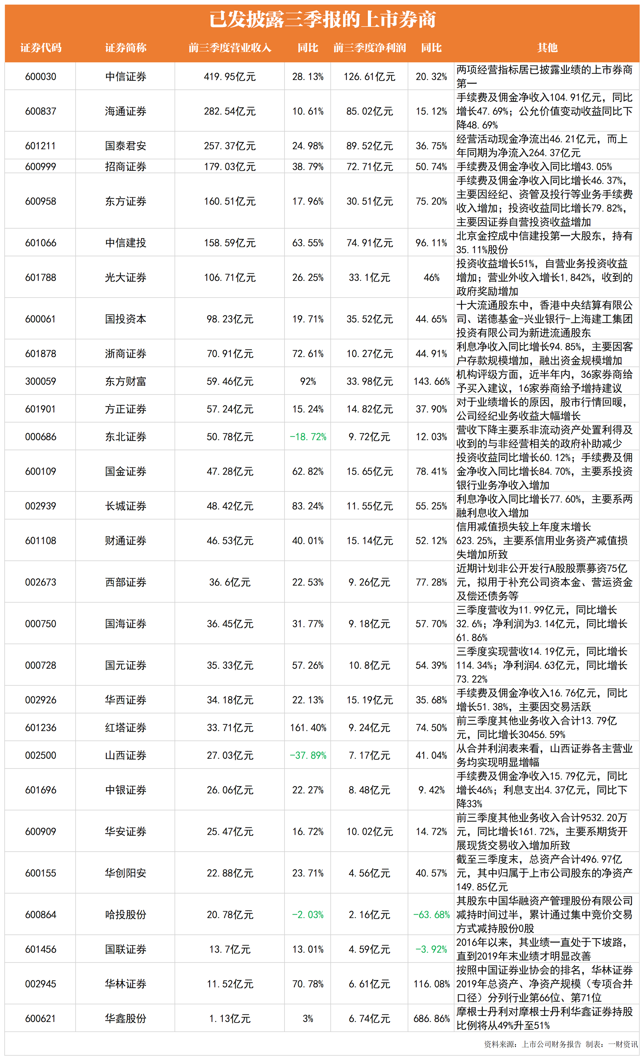 play向前向后原标题:多家上市券商三季报亮相,中信证券稳居“一哥”、月赚超14亿元丨解财报
