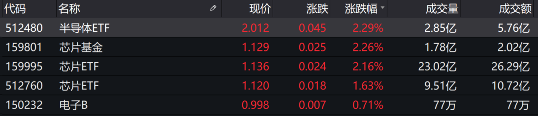 今日,半导体板块表现较为强势,Wind半导体指数涨幅超过1%,兆易创新(603986.SH)涨停。场内相关主题基金悉数收涨,其中,半导体ETF、芯片基金、芯片ETF涨幅超过2%。