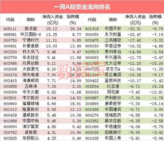主力资金净流出规模前五位的依次是中国平安、东方财富、立讯精密、中信证券、贵州茅台。中国平安净流出金额22.31亿元排在首位,本周累计下跌6.79%。