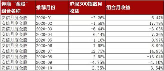 10月A股市场相较9月迎来小幅复苏,数据显示,10月各券商“金股”组合的总体表现情况好于9月。
