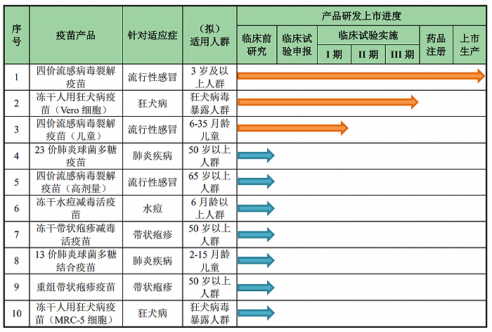 其中金迪克这家公司,是一家专注于人用疫苗研发、生产、销售的生物制药企业。该公司开发的四价流感病毒裂解疫苗已于2019年11月实现上市销售,为国内唯一以预防用生物制品1类向CDE进行申报的四价流感疫苗。另外在研的产品有9个,分别为正在进行临床III期试验的冻干人用狂犬病疫苗(Vero细胞),正在进行临床I期试验的四价流感病毒裂解疫苗(儿童),以及正在进行临床前研究的23价肺炎球菌多糖疫苗、四价流感病毒裂解疫苗(高剂量)、冻干水痘减毒活疫苗、冻干带状疱疹减毒活疫苗、13价肺炎球菌多糖结合疫苗、重组带状疱疹疫苗和冻干人用狂犬病疫苗(MRC-5细胞)。