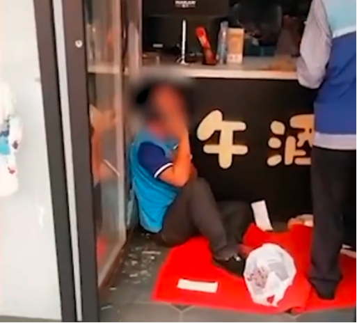 视频后半段显示,店家锅打脚踹外卖员;外卖员则坐在地上,崩溃大哭。