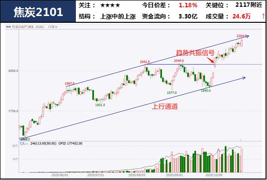 当前焦炭库存持续刷低,需求比较旺盛,但山西受到限产等政策的影响,焦炭的产量并未明显上升,这些都推动了焦炭价格的持续走强。盘面看,焦炭整体仍在上升通道中,今日触及通道上轨,多头结构仍在。