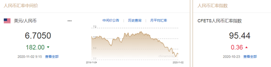 热点栏目11月2日,美元指数升势延续,人民币中间价报6.7050,上调182点,上一交易日中间价报6.7232,在岸人民币上一交易日收报6.7002。