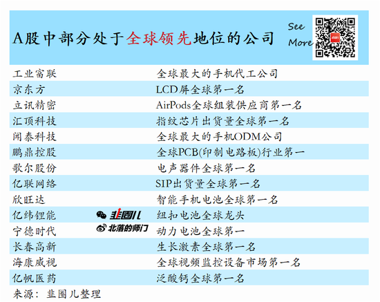 目前A股在全球细分领域第一的公司