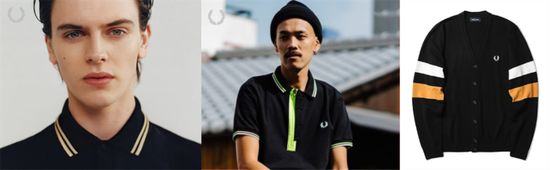 如Fred Perry这般,小范围地使用荧光色或明亮的色块,点缀在领口袖口做饰边,比大面积的鲜艳色更显精致高级。