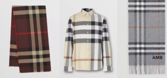 Burberry的经典格子,基本只有1种底色和1-2种条纹色,格纹疏密结合,富有变化。舒适的观感无声地向你诉说:它很贵。
