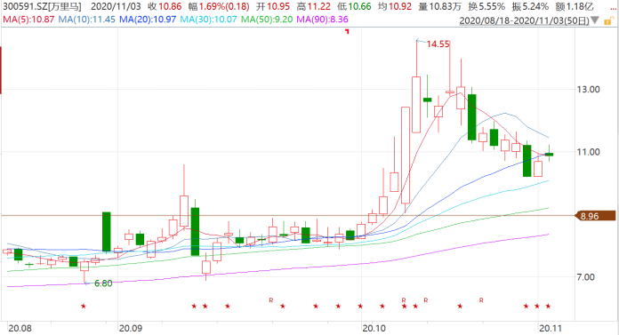 国庆假期后至10月中旬,万里马强势拉升,股价涨至强赎触发价上方。在此期间,万里转债跟涨,走出“十连涨”。