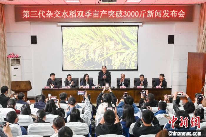 当日,第三代杂交水稻双季亩产3000斤新闻发布会在位于长沙的国家杂交水稻工程技术研究中心(湖南杂交水稻研究中心)举行。此前一天,第三代杂交水稻“叁优一号”衡南双季晚稻试验示范基地现场测产结果公布,其平均亩产达到911.7公斤。加上今年7月测得的早稻平均亩产619.06公斤,第三代杂交水稻早晚双季稻平均亩产突破1500公斤,达到1530.76公斤。