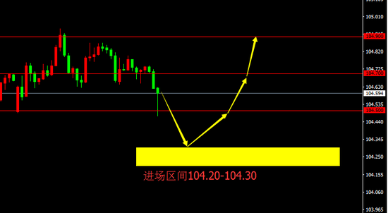 104.20-104.30区间买入,止损20点,目标104.50、104.70、104.90。