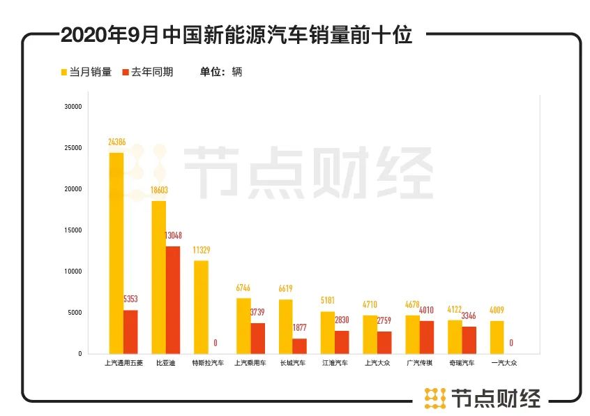 9月份,长城汽车新能源车累计销售了6713辆,占当月销售总量的5.7%,占比不大,并非是销售主力车型。根据中汽协发布数据,9月份,新能源汽车销量完成13.8万辆,长城位居第五名,它的身前,还有上汽通用五菱、比亚迪、特斯拉和上汽乘用车。