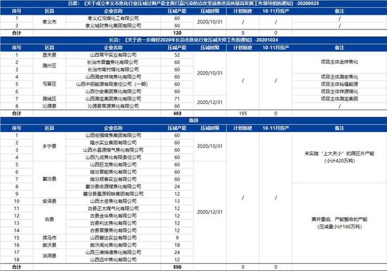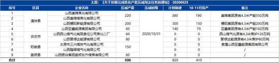 另外,吕梁孝义于8月下旬发布《关于成立孝义市焦化行业压减过剩产能全面打赢污染防治攻坚战推进高质量高发展工作领导组的通知》,长治市也于10月下旬发布《关于进一步做好2020年长治市焦化行业压减关停工作的通知》,两者均对辖区所管辖的焦化企业提出产能压减指导意见,年内合计退出落后焦化产能1183万吨,10月底需完成退出焦化产能712万吨。据悉,当前长治已派出督察组入驻焦企推进产能压减计划,各地产能退出工作或也将大概率得到严格执行。