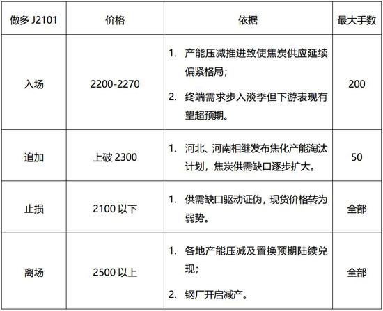 风险因素:山西产能压减执行力度放松,河北及河南产能淘汰推迟执行,焦炭需求季节性大幅走弱。