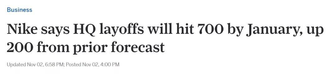 原标题:扛不住了?耐克宣布:总部裁员扩大40%,已解雇上百名副总经理,全球要花17亿“炒人”