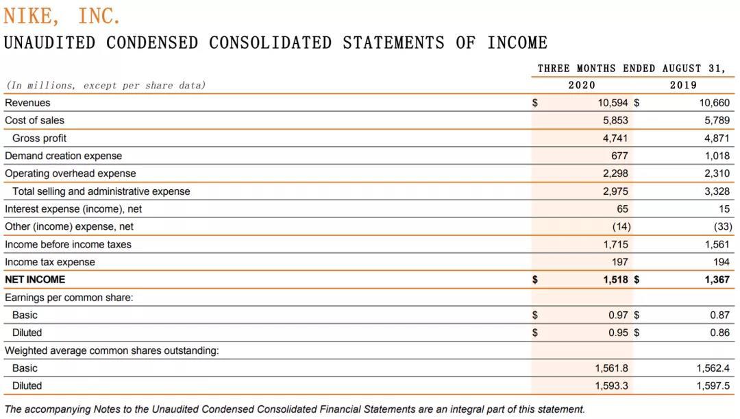 9月,耐克发布了2021财年第一季度的财报(截止8月31日的三个月内)。财报发布后,耐克公司市值一度逼近两千亿美元。