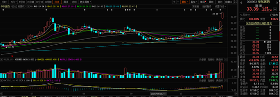 不过,近日股价却迎来连续暴涨,走出2连板。4日开盘,华东医药股价便一路走高,在午后封上涨停,今日其直接高开近4%,随后震荡上涨,在10点25分触及涨停,股价创出阶段新高,截至收盘,报收33.39元,封单逾4万手,两日市值暴涨逾100亿。
