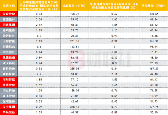 此外,胜蓝股份、海川智能、华辰装备、优德精密等一众热门股均被这两家公司共同持有。