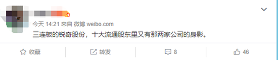 有微博大V含蓄的表示,三连板的锐奇股份,十大流通股东里又有那两家公司的身影。