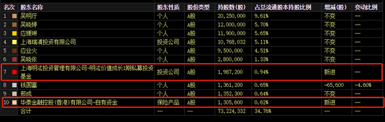 从三季报披露的数据来看,近期多只热门创业板股前十大股东中均有这两家公司现身,此前的网红直播概念龙头因赛集团,四个交易日一度涨逾70%,上海明汯投资管理有限公司-明汯价值成长1期私募投资基金持有58.3万股,占总流通股本的2.12%,华泰金融控股(香港)有限公司-自有资金持有该股达51.1万股,占总流通股本的1.86%。