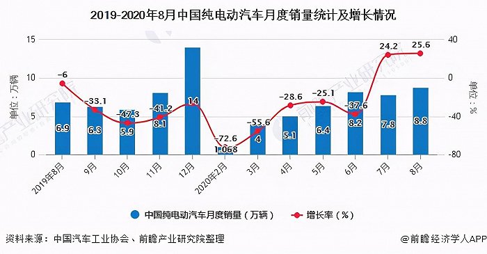 根据中国汽车工业协会和前瞻产业研究院整理的数据显示,2020年8月份中国的纯电动车月度销售额为8.8万辆,而蔚来汽车同期销售额为3965辆车,仅占据市场的3.7%份额。