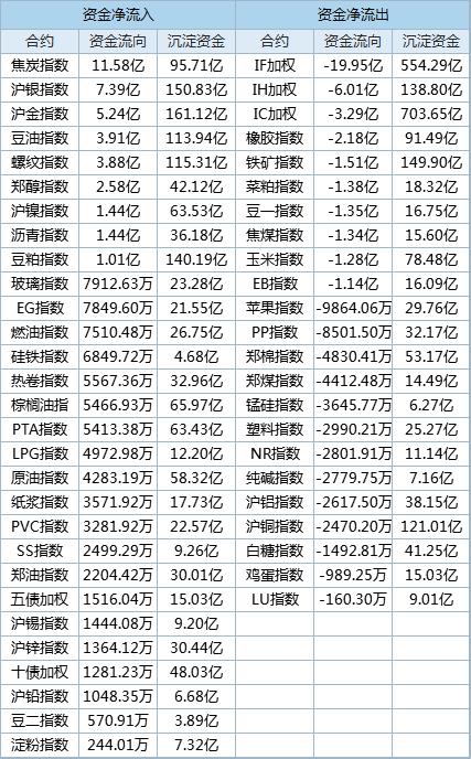 原标题:[文华统计]资金流向:焦炭再创新高 独揽11.58亿资金