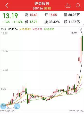 涨幅最高的是锐奇股份,累计涨幅达到62.24%。此次大涨之前,锐奇股份并没有受到太多资金关注,股价走势也相对平淡。锐奇股份在股价异常波动公告中表示,公司当前的滚动市盈率与同行业有显著差异,近期经营情况及内外部经营环境未发生重大变化。今日早间,锐奇股份收到深交所关注函,要求公司结合股价涨幅、市盈率与同行业可比上市公司的偏离情况等进一步提示投资风险。锐奇股份今日高开回落,尾盘收跌11.12%。